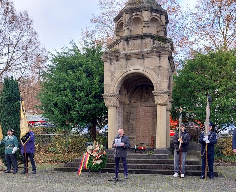 Anlässlich des Volkstrauertages 2025 fand unter Beteiligung zahlreicher Bürgerinnen und Bürger, Abordnungen der Freiwilligen Feuerwehr Weißenthurm, den Weißenthurmer St. Hubertus Schützen, dem MGV Eintracht 1874, Vertretern des TV Weißenthurm, des VVV und des Vereinsringes eine kleine Andacht am Kriegerdenkmal auf dem neuen Friedhof statt.