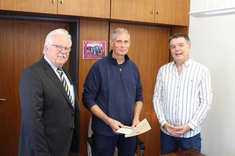 Harald Wertgen wurde für seine 25 jährige Dienstzeit im öffentlichen Dienst von Stadtbürgermeister Gerd Heim mit einer Urkunde und einem Geldpräsent geehrt. Harald Wertgen machte nach seiner Ausbildung zum Forstwirt und Baumschulgärtner nach mehreren Stationen den Abschluß als Gärtnermeister. In dieser Funktion fand er 1995 die Anstellung bei der Stadt Weißenthurm. Harald Wertgen zeichnet sich als besonnene und tatkräftige Person aus und ist mit seinen Kenntnissen eine wichtige Institution im Bereich der städtischen Mitarbeiter auf dem Bauhof. Stadtbürgermeister Heim bedankte sich für seine gute Arbeit und das kollegiale Miteinander. Nach Überreichung der Urkunde und dem Präsent wurde bei einer Tasse Kaffee noch die eine oder andere Anekdote ausgetauscht. Von dem ersten Beigeordnete Werner Schumacher und Stadtbürgermeister Gerd Heim kamen die Besten Wünsche für eine weiterhin gute Zusammenarbeit.