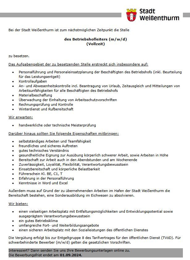 Kriegsgäbersammlung 2024 Mittagstisch VG... Thurer Mittagstisch 10/24 ... Jetzt beim ADFC-Fahrradklima-Test 2024 abstimmen!Jetzt beim ADFC-Fahrradklima-Test 2024... Thurer Mittagstisch 09/24... Brief aus dem Rathaus 08/2024Brief aus dem Rathaus Liebe... Lärmschutzmaßnahmen DB... Boxnacht 2024Große Boxnacht in Weißenthurm Das... Herzliche Einladung zum „Tag des offenen Denkmals“ 2024Herzliche Einladung zum... Stellenausschreibung... Spielplatz Fliederweg nach langer Wartezeit wieder geöffnet!Spielplatz nach langer Wartezeit wieder... Mittagstisch August 2024... Halbseitige Sperrung eines Teilstückes der HauptstraßeBekanntmachung für die... Blutspende 06.08.2024... Picknick im Park 2024... Mittagstisch Juli 2024... Achtung!Achtung! Eichenprozessionsspinner... Lampionfest 2024Feuerwehrleute feiern 30 Jahre... Bürgerversammlung... Mittagstisch Juni 2024... Seite 2 von 13 StartZurück12345678910WeiterEnde Blick aus dem weißen Turm via Webcam Beim Klick auf das Bild sehen Sie Bilder der Webcam im Zeitraffer.