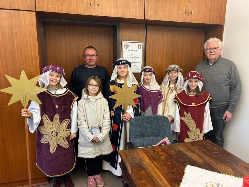 Stadtbürgermeister Heim sowie der Beigeordnete Juchem haben sich über diesen Extrabesuch sehr gefreut. Sie warfen einen finanziellen Beitrag für den guten Zweck, in die Spardose der Sternsinger. Für die Bereitschaft der Kinder und der Erwachsenen, diesen historischen Auftrag auch in 2024 durchzuführen, möchten wir uns ganz herzlich bedanken. Diese Sammlung ist immer verbunden mit einer guten Tat. Das unterstützte die Stadt mit einigen Süßigkeiten für die beteiligten Kinder. Danke an Alle die mitgewirkt haben.