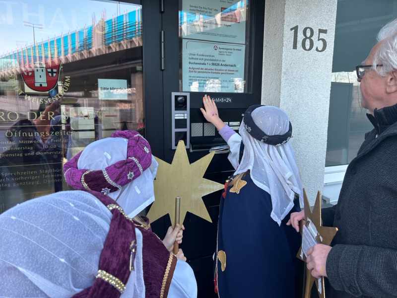 Obwohl die Sternsinger ihren Rundgang durch Weißenthurm bereits am Samstag abgeschlossen hatten, besuchte eine Gruppe das Rathaus der Stadt am Montag, um auch dort den üblichen Segensspruch vorzutragen und die bekannte Inschrift an der Eingangstür des anzubringen.